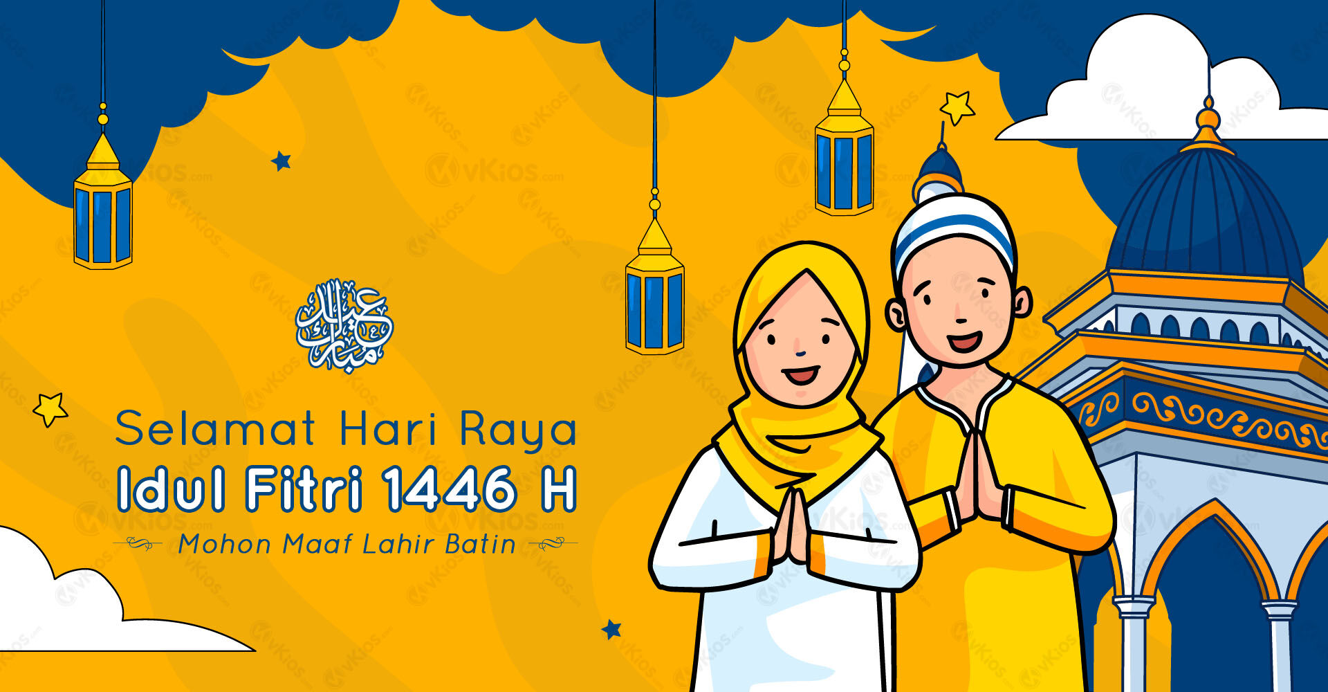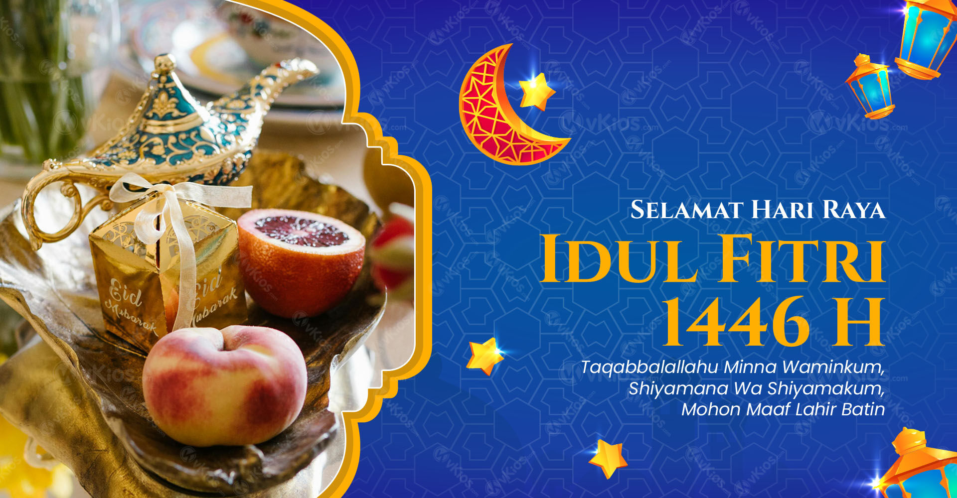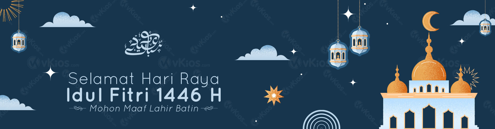 Untuk menyambut Idul Fitri 2025, kami menyediakan banner-banner ucapan menyambut Idul Fitri yang bisa digunakan di toko online Anda. Kami juga menyediakan 5 banner untuk diposting di Instagram.Banner dan slide di bawah ini masih menggunakan Watermark vKios.com. Anda hanya boleh memilih satu dan nantinya akan diberi watermark sesuai nama domain atau Instagram Anda. Silakan hubungi tim support vKios untuk pemasangannya :)